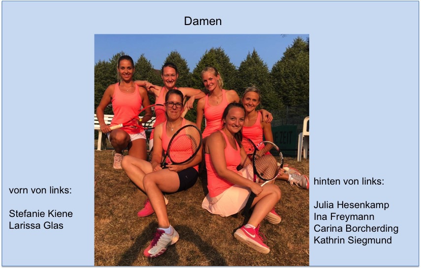 Unsere Damen-Mannschaft spielt bisher eine sehr gute Saison. Brilliant die Ergebnisse von Ina Freymann, Julia Hesenkamp, Carina Borcherding und Sabrina Herzog. Etwas schwerer zu kämpfen hatten Larissa Glas und Stefanie Kiene, leider nur einmal zum Einsatz kam Kathrin Siegmund. Die ersten 4 Begegnungen wurden deutlich gewonnen, einen kleinen Dämpfer gab es jüngst mit dem 3:3 zu Hause gegen Bückeburg. Aber beim HTV Hannover II, dem direkten Konkurrenten um den Aufstieg in die Verbandsliga, kann im Entscheidungsmatch dieser Gruppe am 18.08. durchaus noch das gesteckte Ziel erreicht werden. Wir drücken dafür die Daumen!