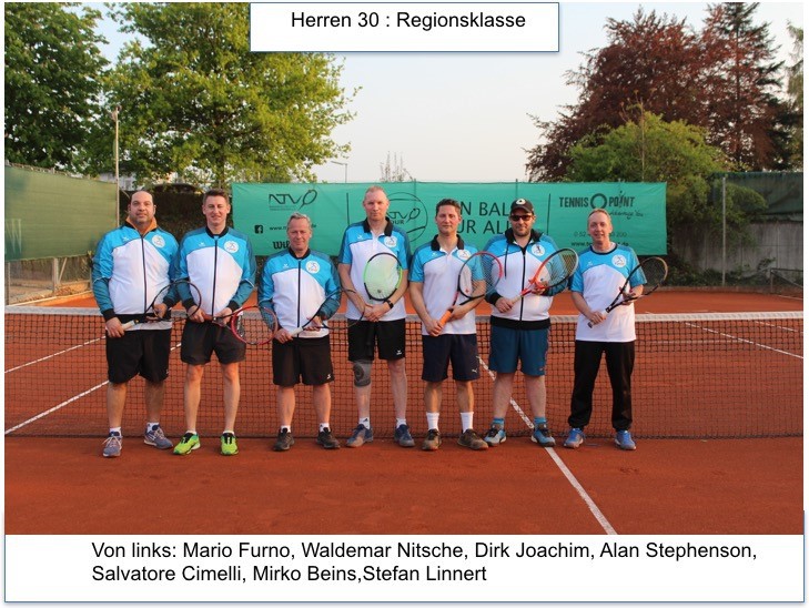 Die Herren 30 haben in ihrer Gruppe in diesem Jahr einen schweren Stand. Mit 0:6 Punkten halten sie leider aktuell die „Rote Laterne“ in ihrer Gruppe. Aber Alan Stephenson, Mirko Beins, Mario Furno/Stefan Linnert konnten bisher auch positive Spielergebnisse einfahren. Vielleicht gelingt ja noch im letzten Spiel gegen den bisher ebenfalls noch sieglosen TV Eldagsen ein Achtungserfolg.